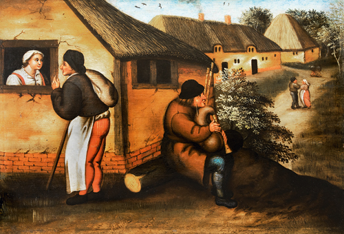 Gaitero-y-caminante-en-un-pueblo-Pieter-Brueghel-el-joven-ca.-1580-1590 - ¡Zas! Madrid
